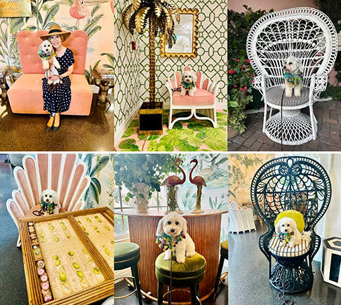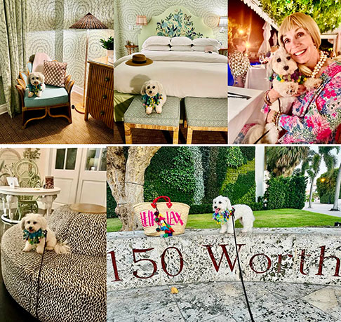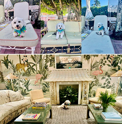 When visiting Palm Beach Island, TJ Fisher and her pup, Zuzu Marigny Laveau, recommend their favorite in-town hotel go-to spot—whether for a stay, dining, cocktails, parties, coffee, meetings, or people watching—the legendary and ultra-pet-friendly Colony Hotel. Zuzu loves his special VIP (Very Important Paws) visits, “see and be seen.” The Colony is an iconic and storied “retro-chic” pink hotel, beloved for its central location near Worth Avenue, vibrant atmosphere, and historic charm. The perfect Pink Paradise is the perfect hangout spot. The pink “older lady socialite grand dame hotel” with a past is beloved by longtime Palm Beachers, newcomers to the island, vacationers, shoppers, and day-trippers. The landmark hotel understands and reimagines the classic aesthetics of “Old Palm Beach” of time and an era gone by, the traditions, attitude, ambience, nostalgia, and character. The hotel infuses the quintessentially Palm Beach vibe, retro cool, new again, like stepping back in time.